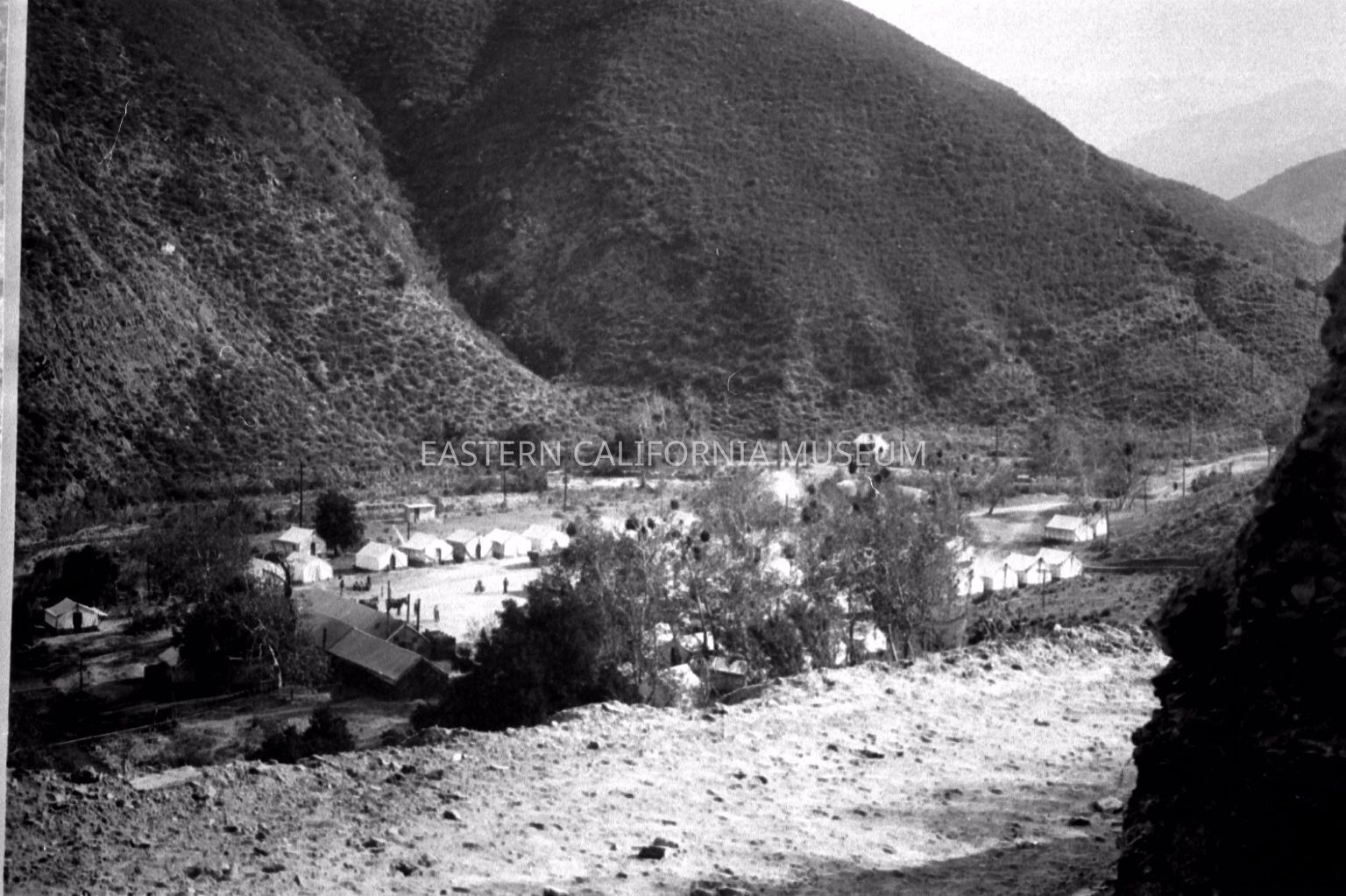 B & W digital scan of LA Aqueduct Construction Camp, possibly Soledad Division