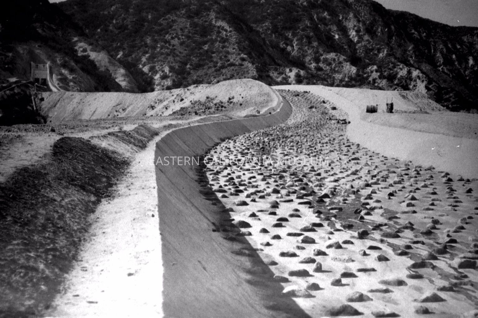 B & W digital scan of Lower Portion of the Cascades, terminus of the LA Aqueduct, showing stones placed in the channel to oxygenate the water before entering into LA's water distribution system.Collection