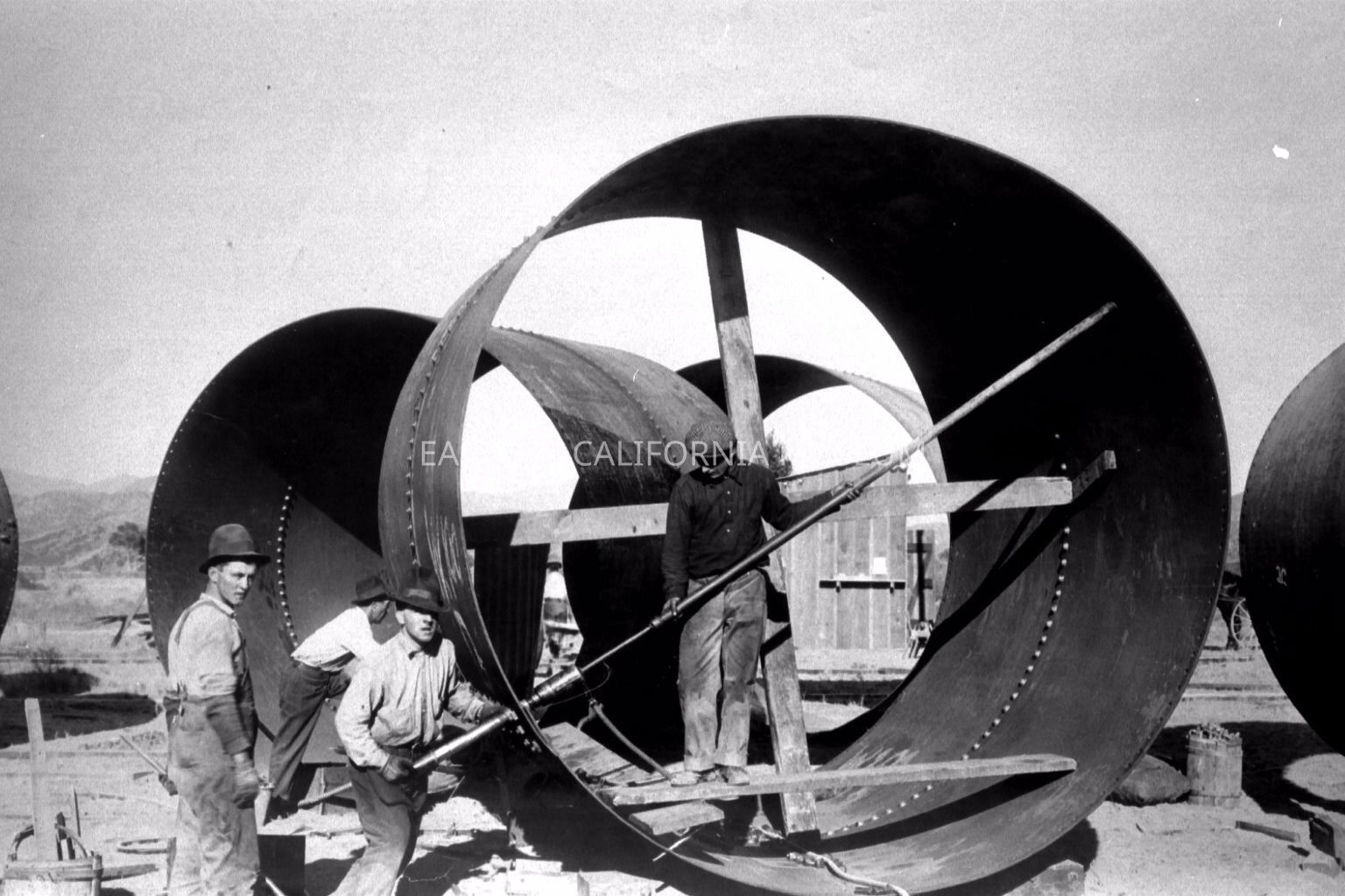 B & W digital scan of LADWP Laborers Field Riveting Plates for LA Aqueduct Siphon Pipe