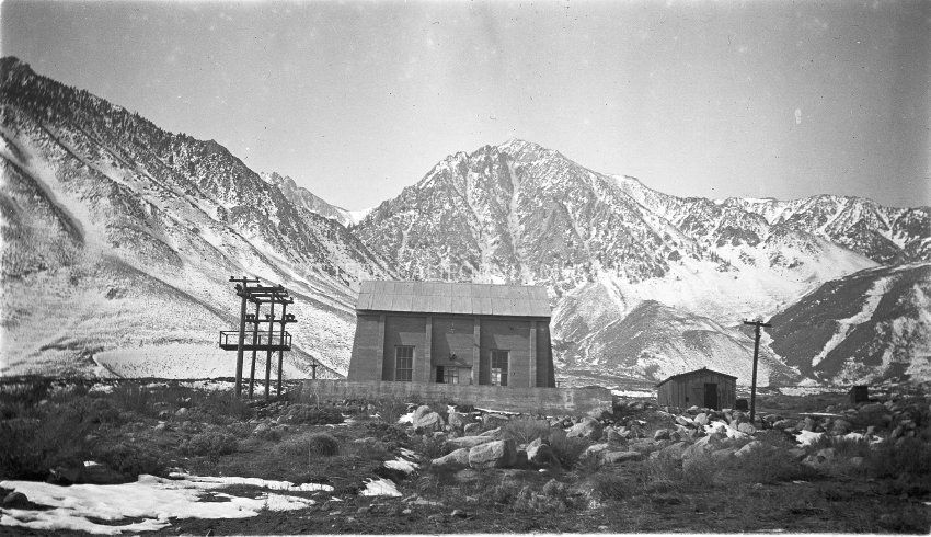 "The powerhouse was a small frame building with a tiny 120-kilowatt generator. It harnessed the flow of a small creek tumbling down from the High Sierra, producing hydroelectric power for construction work on the new Los Angeles Owens River Aqueduct which was just getting started at the time. It was the first known use of electricity for a construction project of this kind." --from LADWP Archives, waterandpower.org.