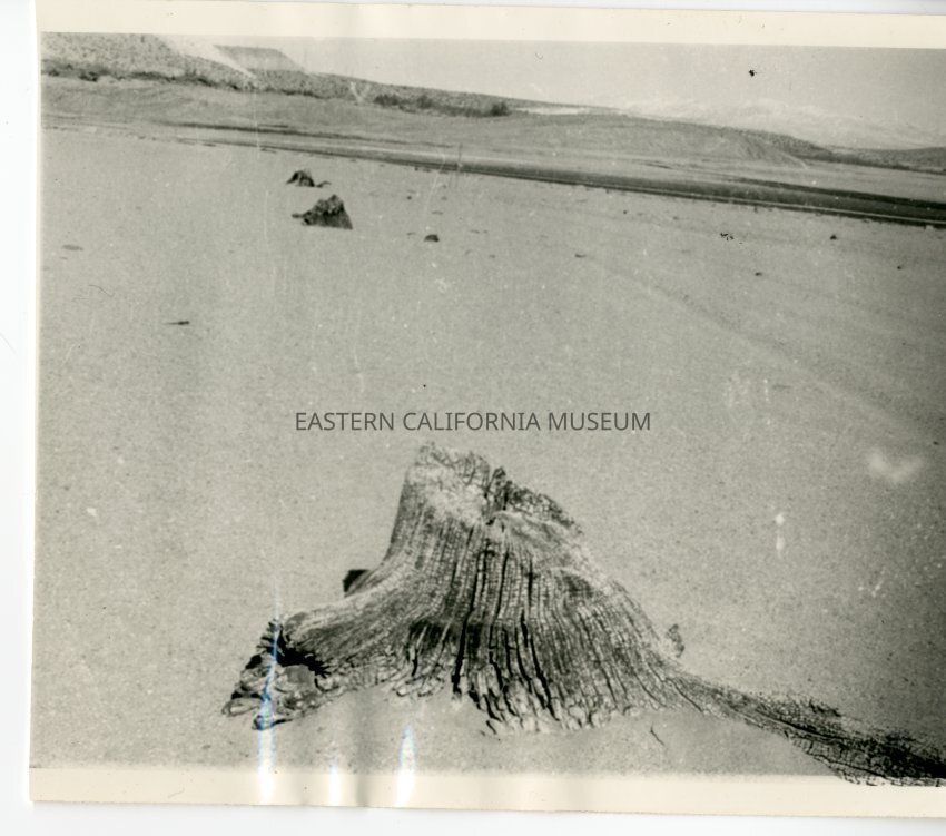 Reverse: Handwritten in ink: When Haiwee Reservoir was drained preparatory to building of the "second barrel" of the Los Angeles Aqueduct, this tree stump was revealed. What pioneer planted it--and what pioneer sawed or cut it down? C. Lorin RayCollection
