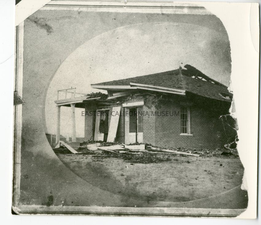 B&W. Inyo County Courthouse in Independence after the 1872 earthquake.