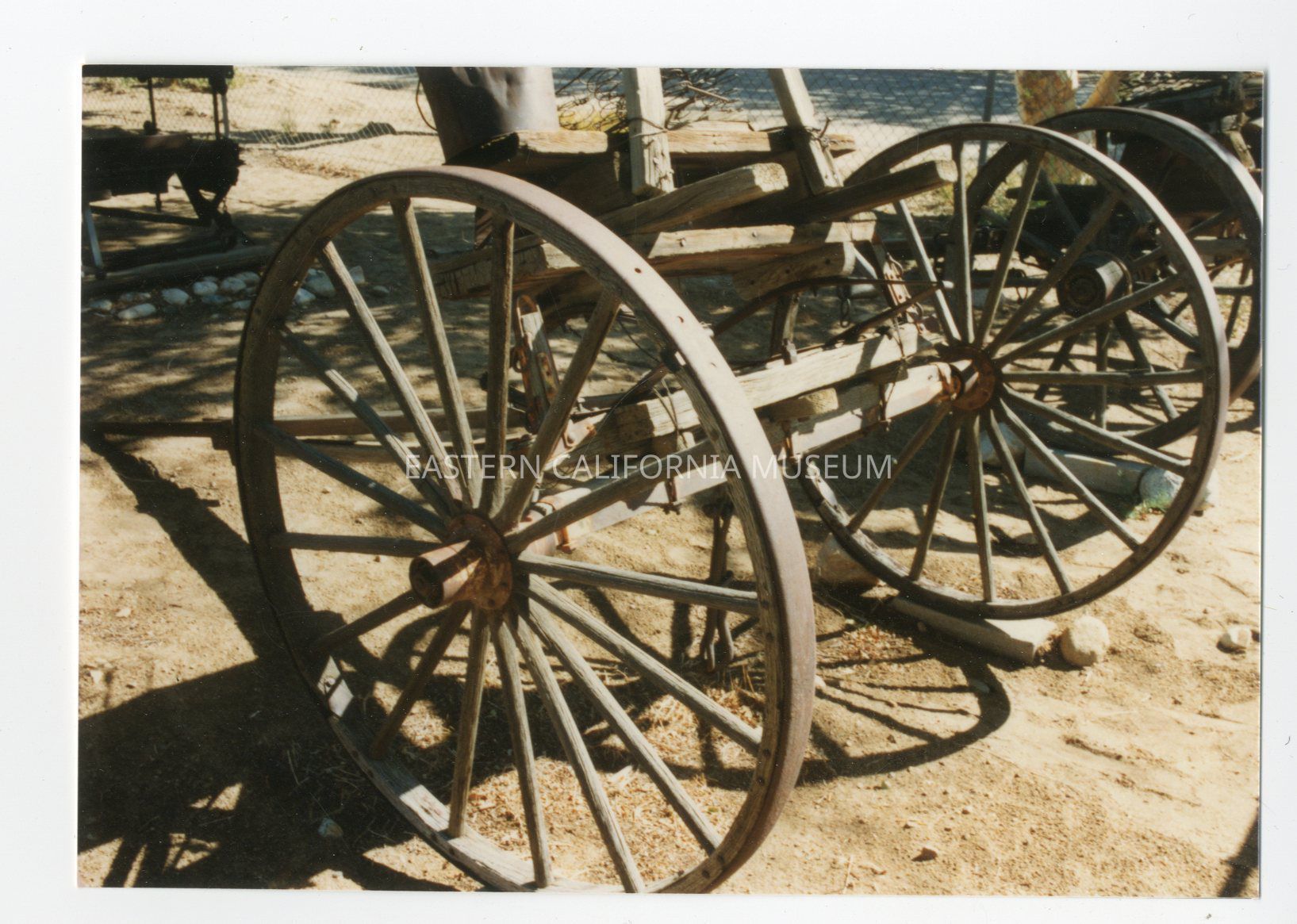 No. 3. Another ditch rider wagon similar to No. 2. Note the narrow wheels. These two wagons were obtained from parties in the Bishop area and converted for use by the Department of Water and Power. Each horse-drawn wagon was used on each side of the aqueduct canal to sluice the canal of moss and debris. A similar wagon was procured for a ditch patrolman located at Cottonwood Gates as he was unable to ride horseback as other patrolmen were.