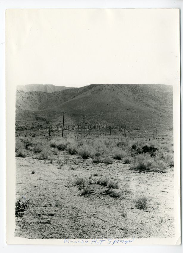 Reverse: Handwritten in blue ink: Clump of brush in foreground indicates location of Kate Bender near Keough Hot Springs. She and father featured in notorious crime period in Kansas. Story by me in Inyo Register 5/27/64. C. Lorin Ray.Collection