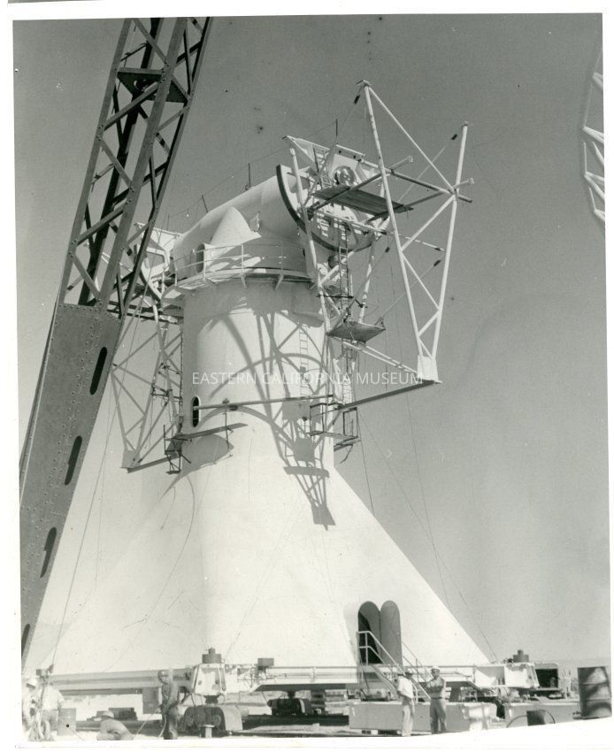B&W. Photo of the antenna at CARMA outside of Big Pine being assembled. Similiar to RAY 75.