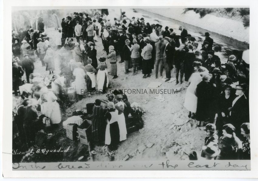 Reverse: Handwritten in ink: Women preparing and serving the men stationed at the Alabama Spillway when citizens diverted waters from Los Angeles aqueduct Nov. 1924. Ladies fed the group for 4 days. Nov 16-20, 1924.Collection