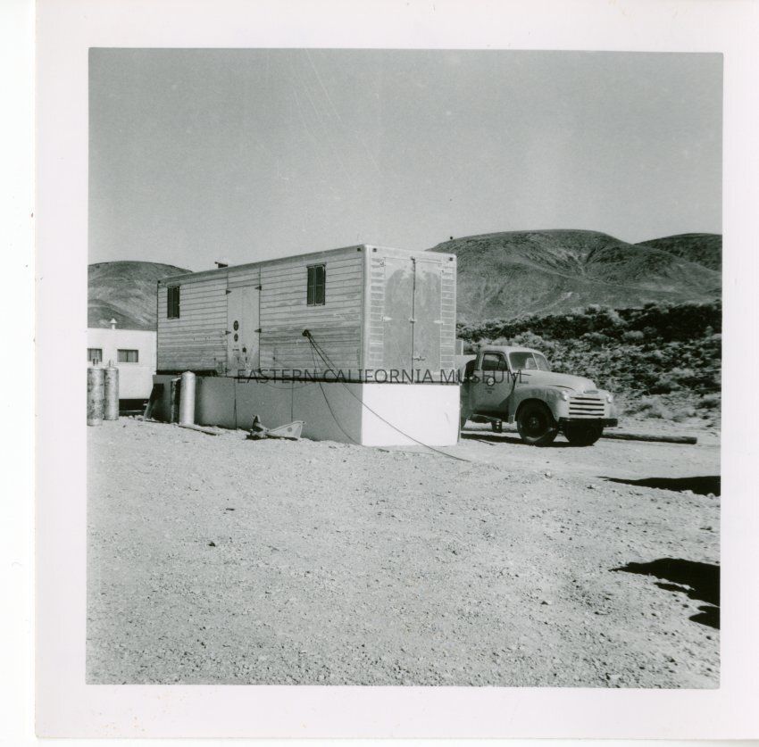 Reverse: Handwritten in blue ink: Road camp on Owens Valley-Death Valley road construction. 3/18/60Collection