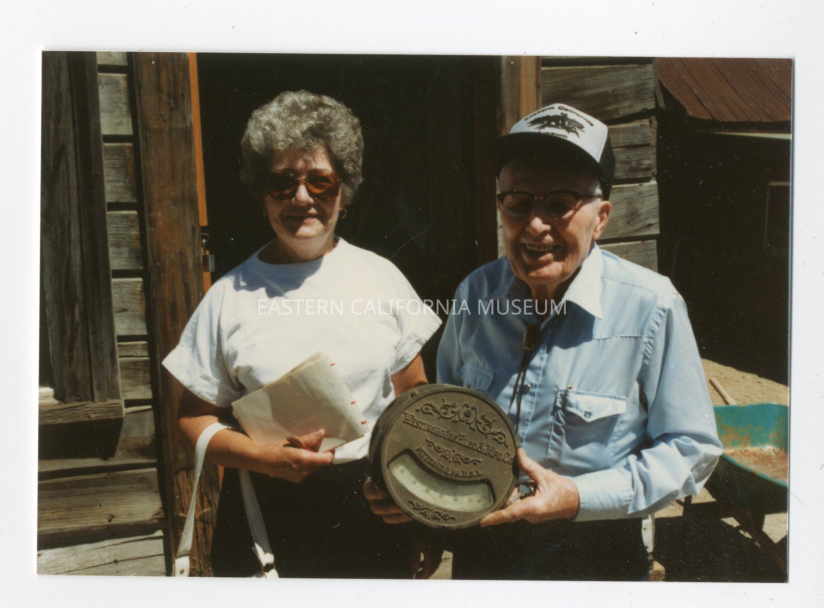 No. 2-14. Jean Piercy and Gene Barrows holding a volt meter from Division Creek Power Plant.