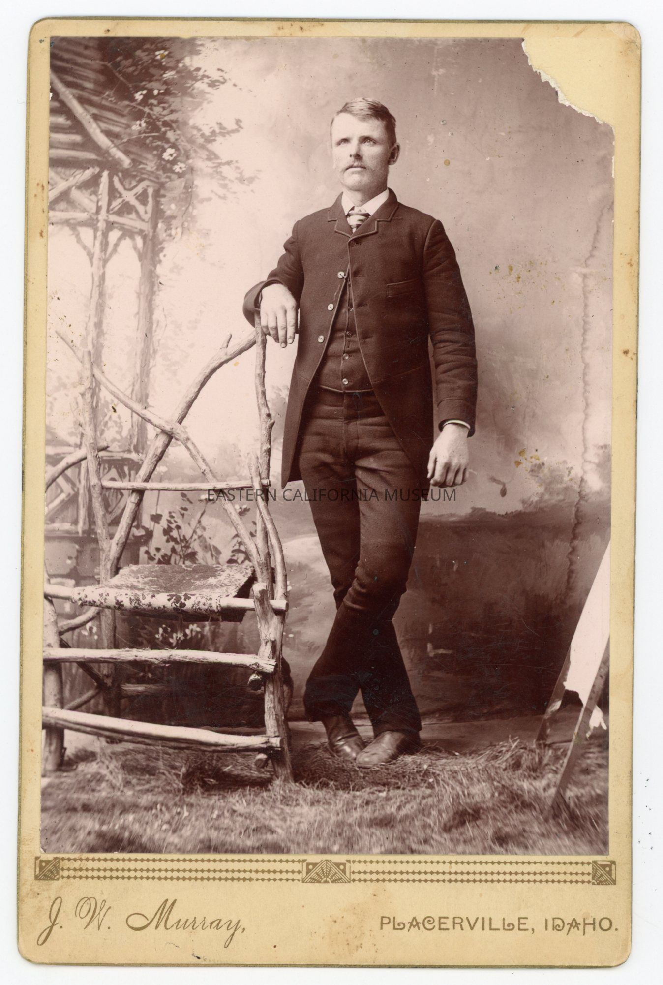 Mounted studio portrait of J. N. DeChambeau taken by photographer J. W. Murray of Placerville, Idaho.Collection