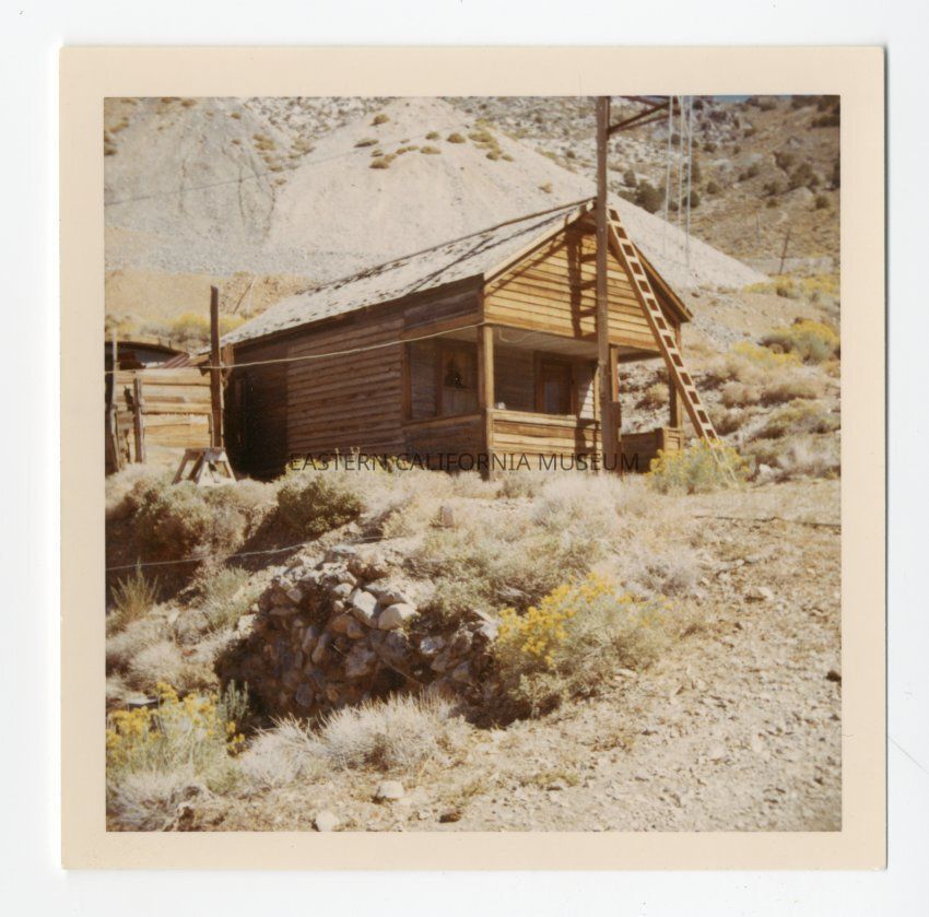 Small color photo of a wooden building at Cerro Gordo.