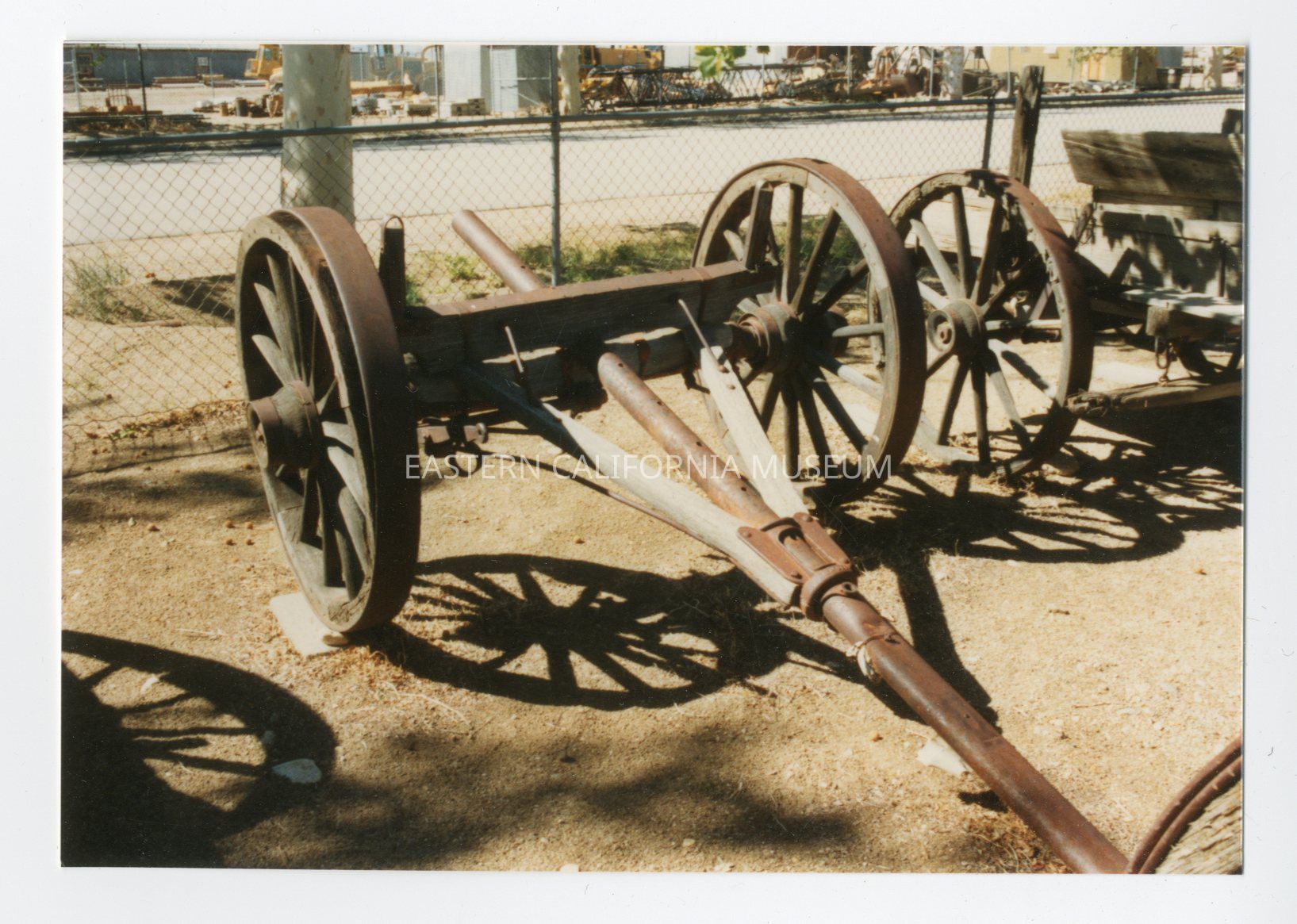 No. 10. This wagon was constructed with an adjustable metal "reach," (distance between front and back running gear). It could haul longer pieces of pipe or poles or whatever the cargo. Only the wide-tire rear axle is seen here.