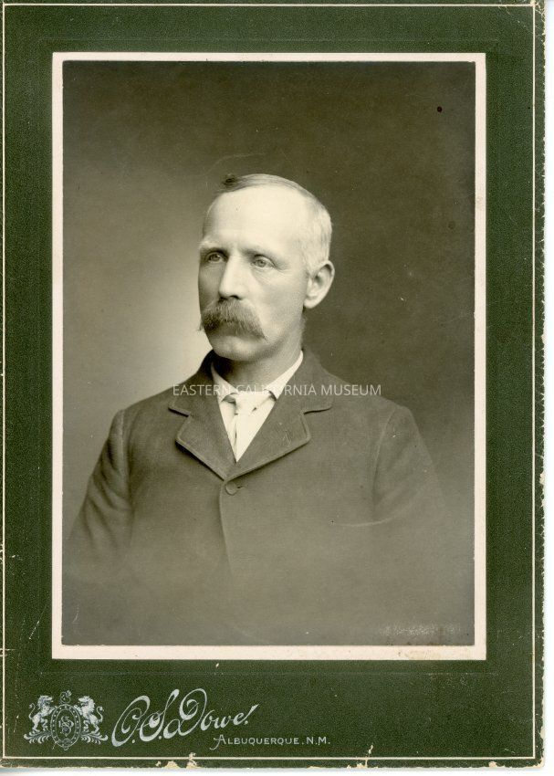 Mounted photo of a man posing for a studio portrait. The studio's information is "O. S. Dowe, Albuquerque, N. M." Writing in pencil on back: "George Thorpe, a miner."
