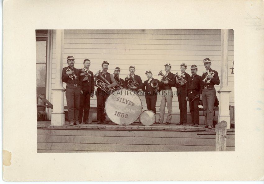A note on the photo envelope says that the band was organized in 1888, but that the photo was probably taken circa 1890.