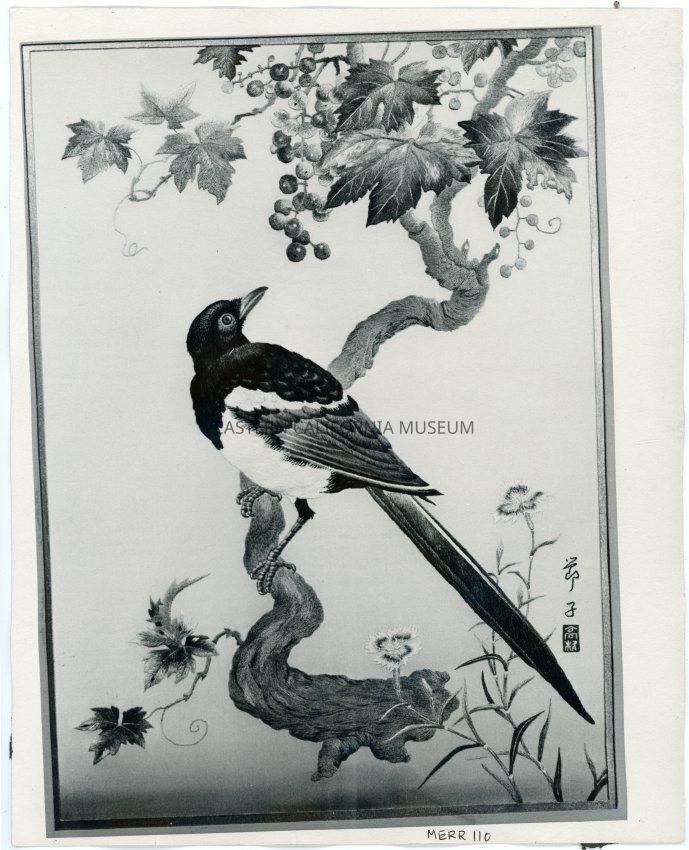 The label in album says, "Silk embroidered picture."Photograph Details