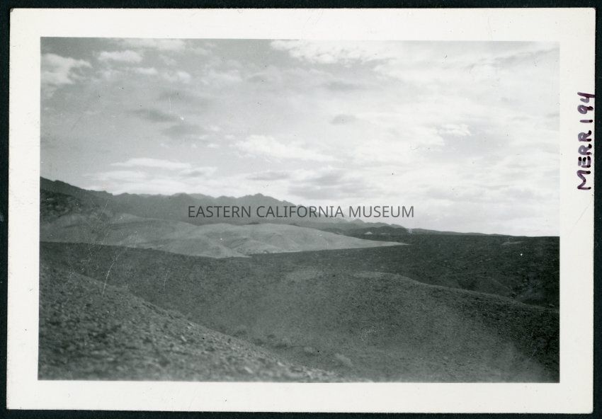 Photograph of an unknown location in Death Valley National Park. Hills and mountains can be seen stretching to the horizon.Collection