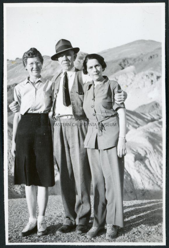 Photograph of two women and a man standing at Zabriskie Point in Death Valley National Park.Collection