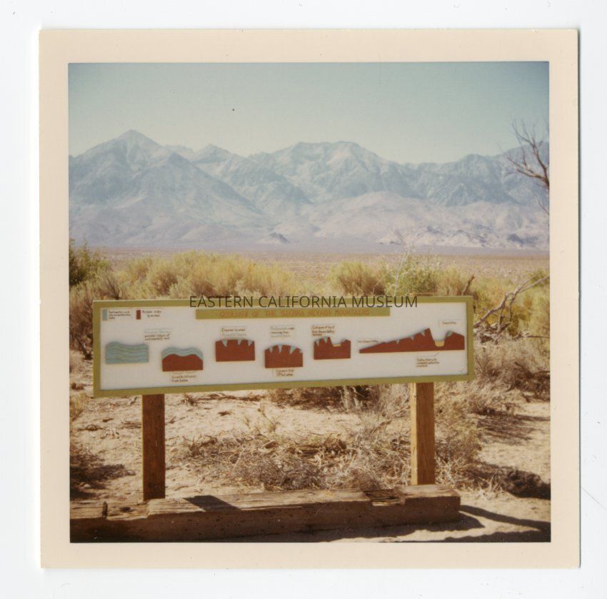 Small color photo of an informational sign about the geology of the Sierra Nevada. It appears to be located on museum grounds.