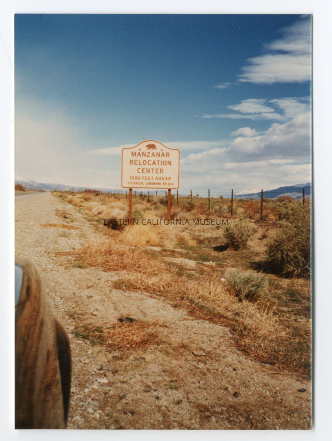 Color photo of the Historical Landmark sign for Manzanar Relocation Center.