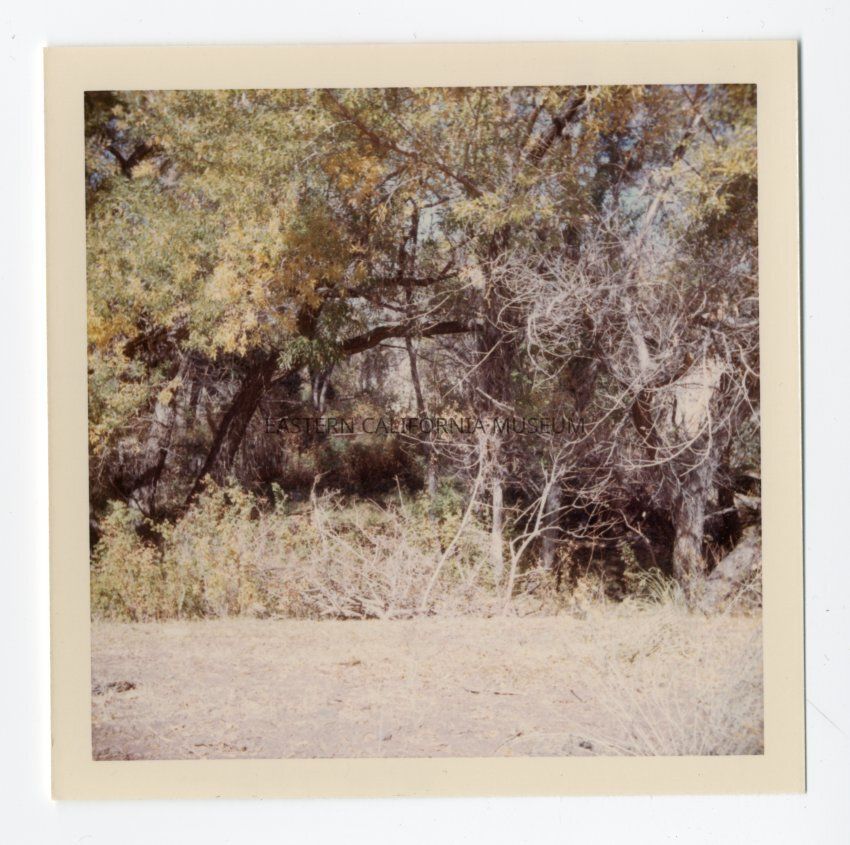 Small color photo of Norman Clyde's home (he was a squatter), Baker Ranch house, in Big Pine. A note on the back says, "Norman Clyde place, city [Los Angeles DWP] land."Collection