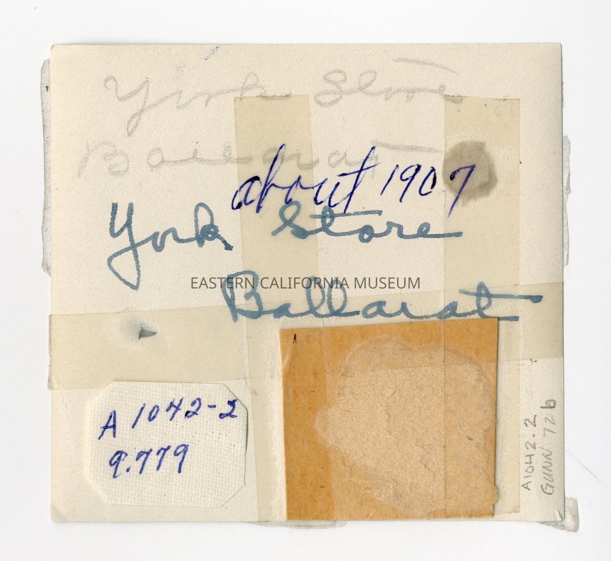 On reverse in old blue-green ink: York Store Ballarat.