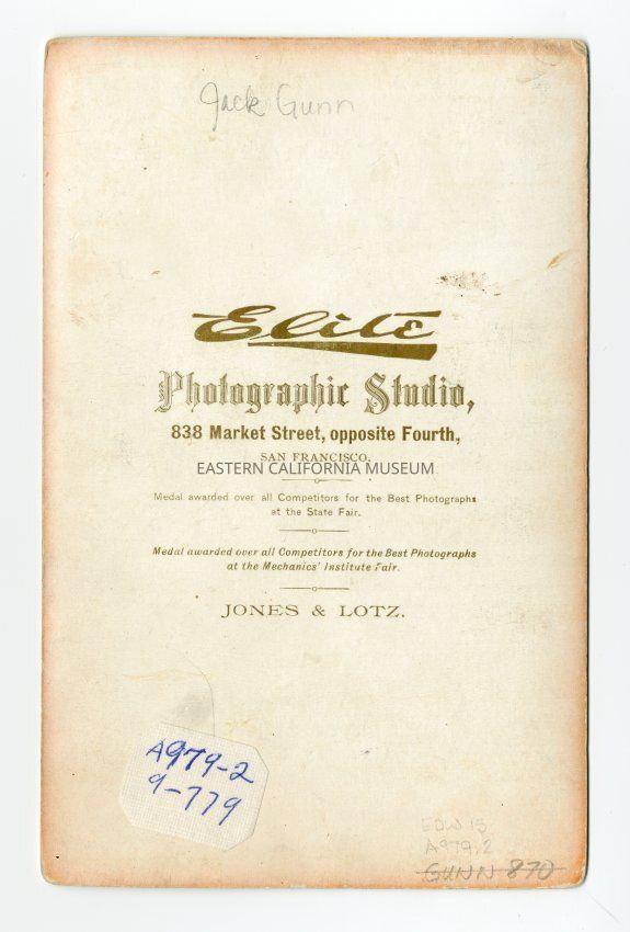 Mounted photograph of Jack Gunn. Photograph by Elite of San Francisco.