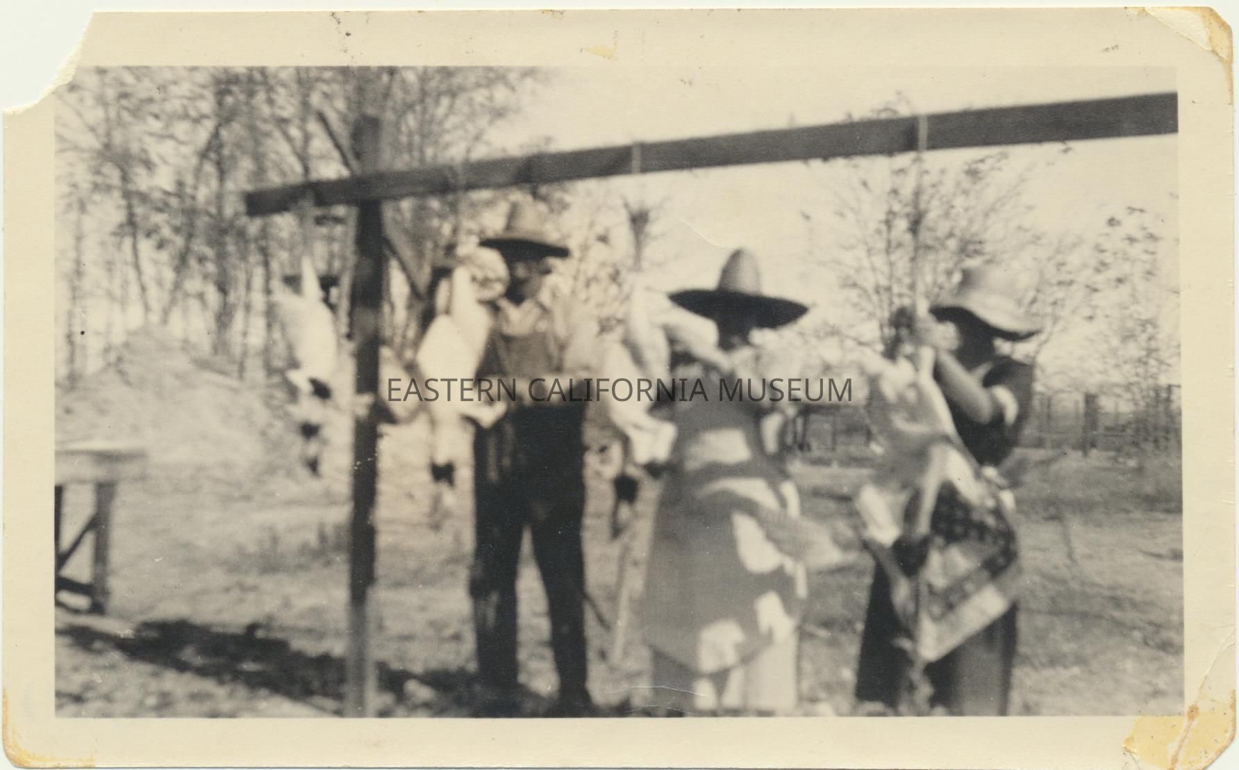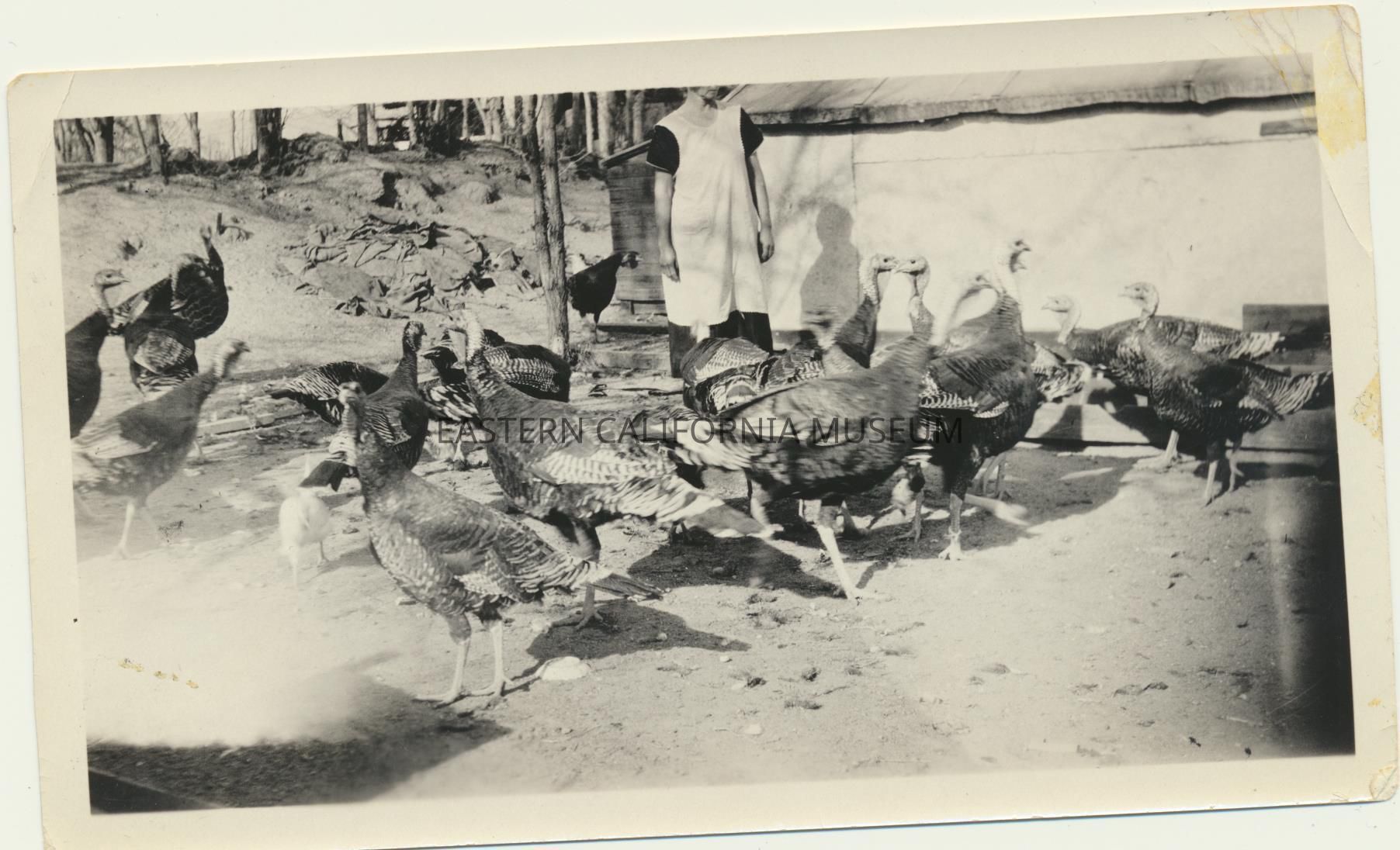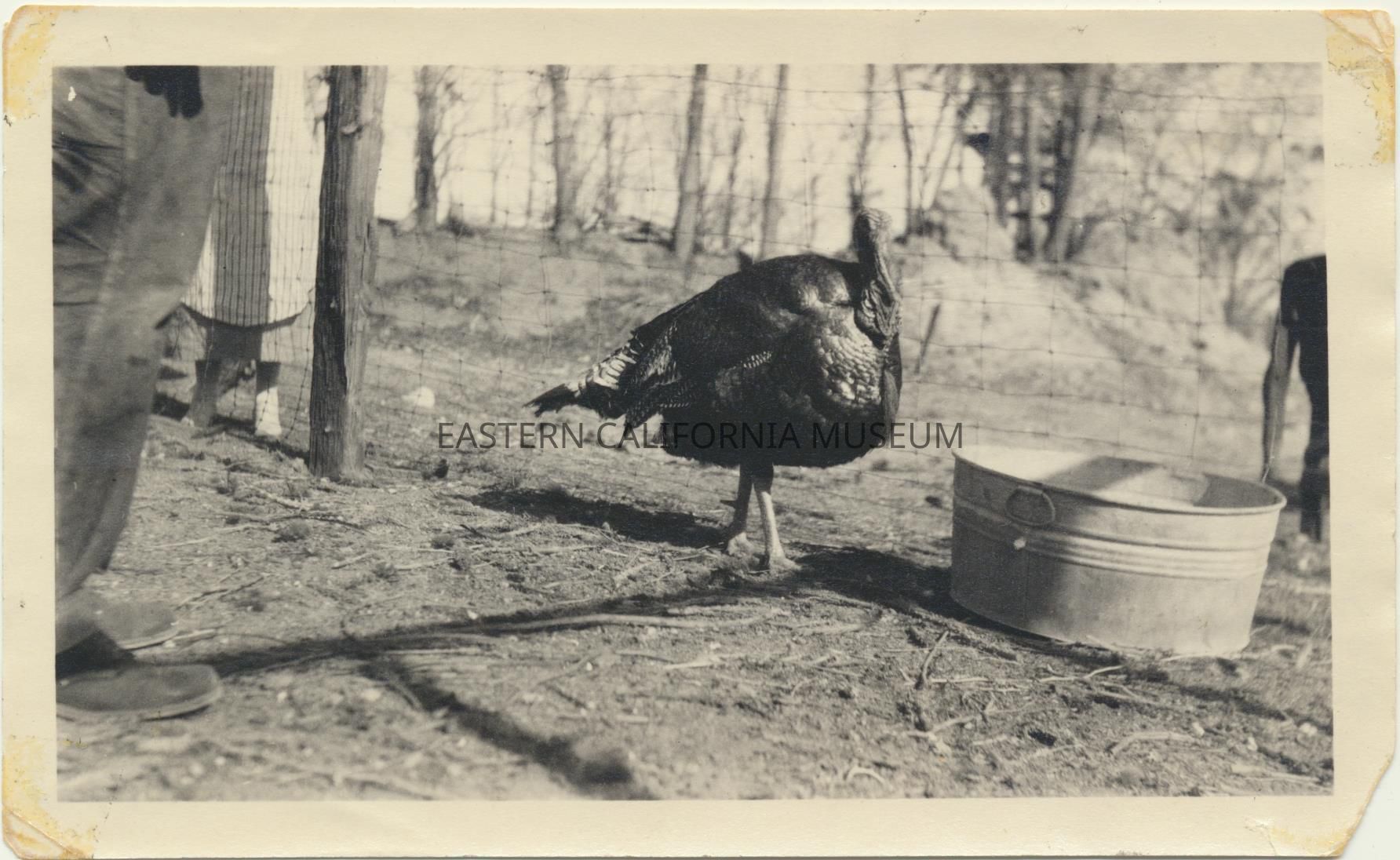 Note on archival envelope says the caption of these photos in the original album was "Inyokern. Turkeys we raised and dressed them for the Arlington Hotel in San Francisco."Photograph Details