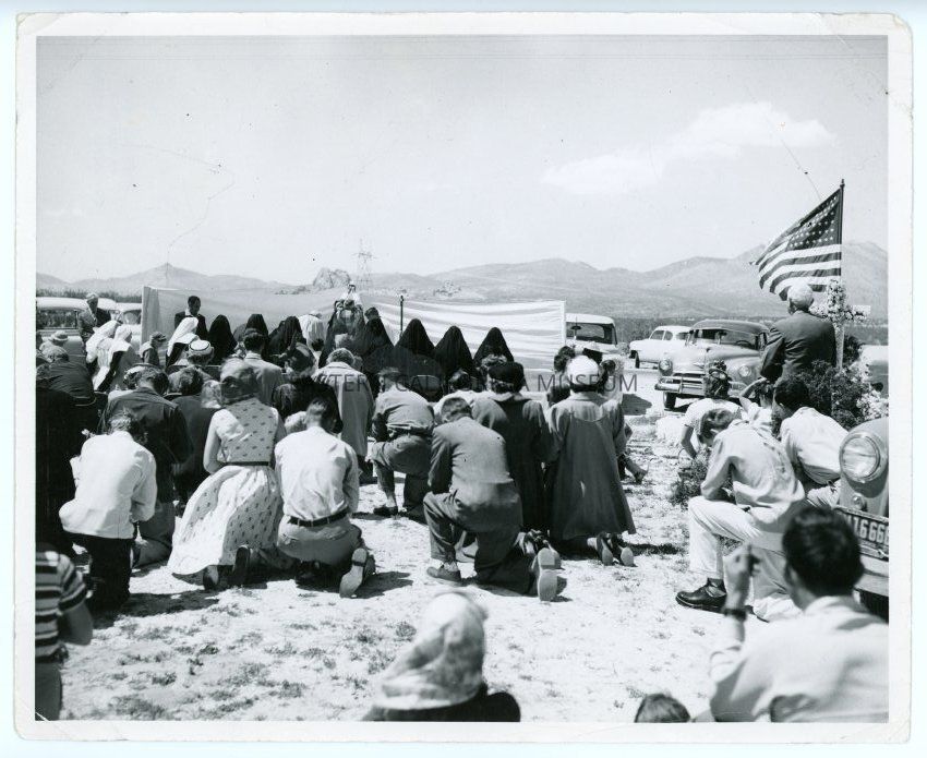 Old label says: A memorial service for Monseigneur John J. Crowley at the site of his death near Freeman Junction. Father Crowley died on Palm Sunday, March 17, 1940.Collection