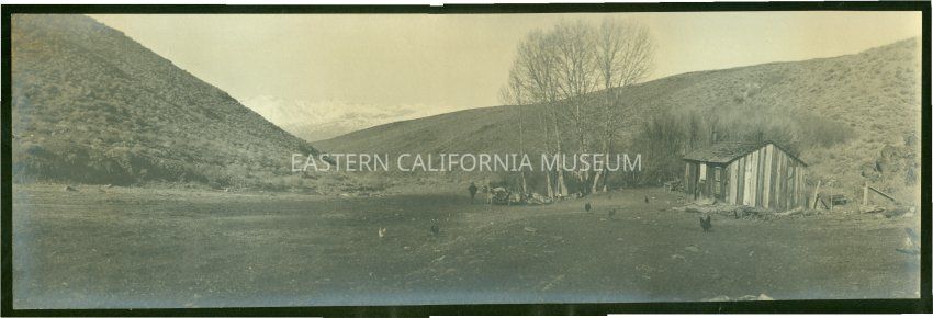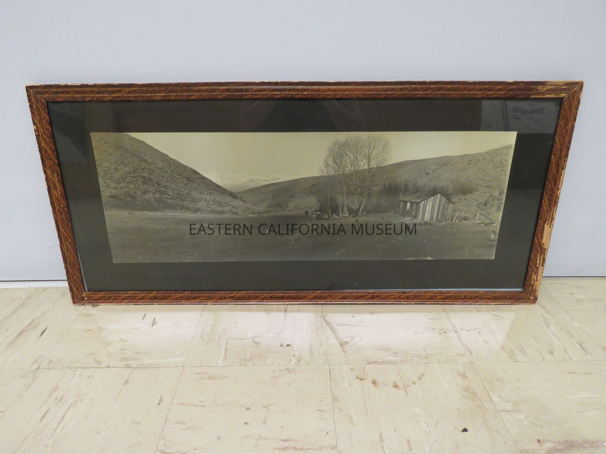 Framed panorama photograph of Deep Springs Toll Station on Westgard Pass about 1913.