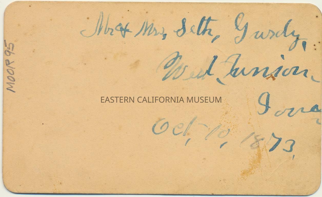 Written in blue ink on reverse: Mr. and Mrs. Seth Gurdy, West Union, Iowa, Oct. 10, 1873.Photograph Details