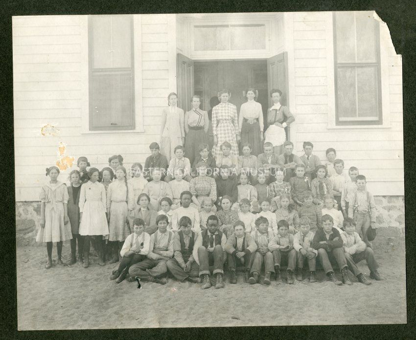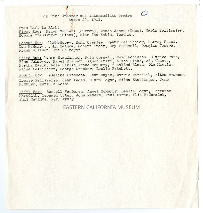 Mounted school photo of the Big Pine grammar and intermediate grades, March 29, 1911.