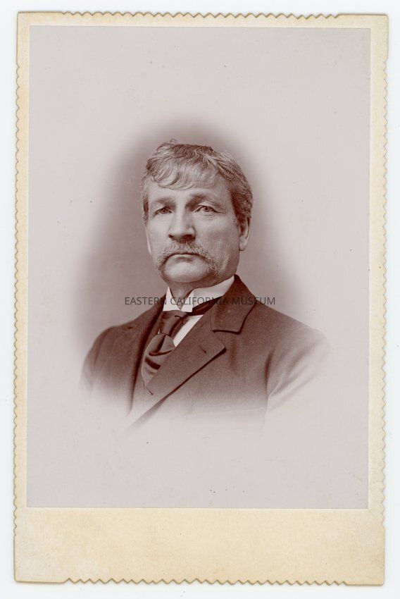 Mounted bust-length studio portrait of an unidentified man. The edges of the mount are scalloped.
