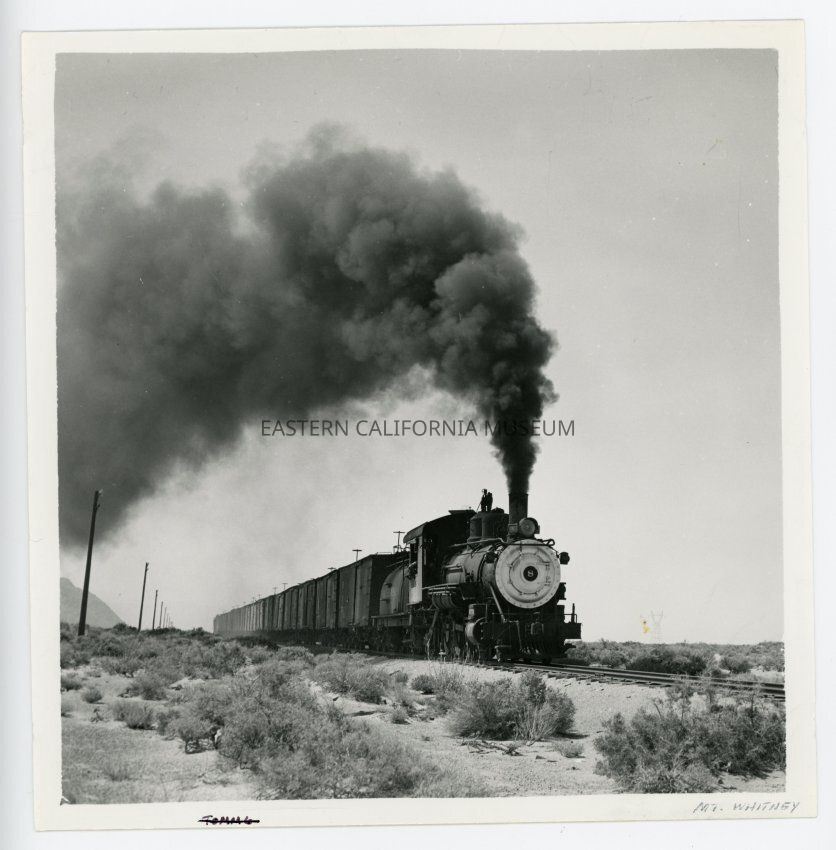 Written in black ink on reverse: Train pulling into Laws, 1948.Collection