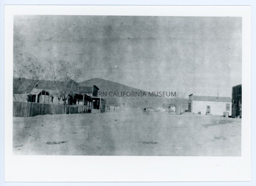 A photocopied paper written by Elizabeth Mecham says: Looking up Main Street 1916 before 2 blocks burned first fire Aug. 17, 1917. On right part of original barns 1876, street, then Black Metal Saloon--Henry Heitman's--then locust tree by water trough--now where Theo. Peterson's [Petersen?] cafe and garage is--next Alex Rouna's house--burned down Nov. 8, 1943. Tent above where the Green house is that Enar and Bee Peterson [Petersen?] built onto. On left side of street behind fence is the house built 1877 by McClouds and bought by Charles and Mattie Long 1905--later married Domingo Etcharren. This house is where 2nd fire started by gas explosion. Next original store built 1876--at this time owned by Mamie Reynolds--then across the street the original hotel--owend by Domingo Etcharren--then 3 original stores--restaurant, saloon at time of fire owend by Mrs. Catalina Loughrey and was an eating house and rooms rented, your house on their lot. Then Frank Carthery's home and on corner a cellar--Out Post now on these lots, on left Bradford's house--one of the 2 originals left and old saloon house. 2 blocks burned in this second fire.