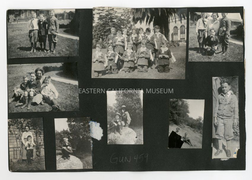 A1831.3.23i: Exterior photo of a young boy. There is someone behind him who has been cropped out of the photo. He is identified as George.Collection