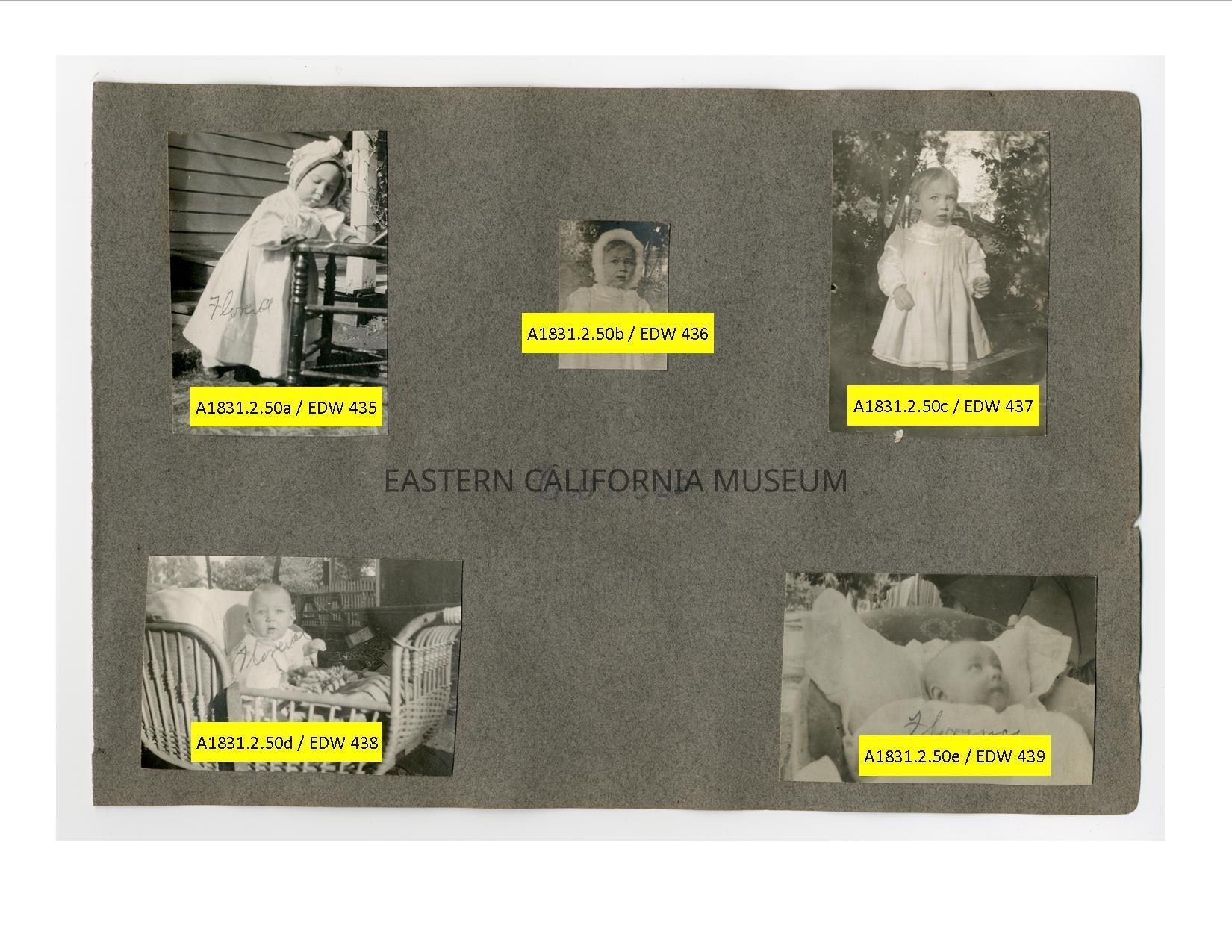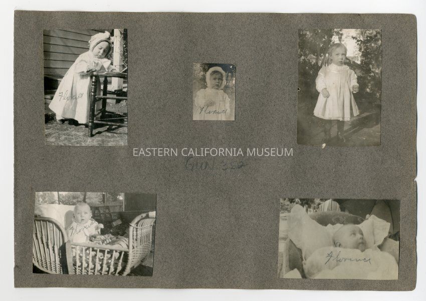A1831.2.50b: Exterior photo of a baby identifed as Florence (Shepherd?). Possibly Ed Shepherd's daughter.
