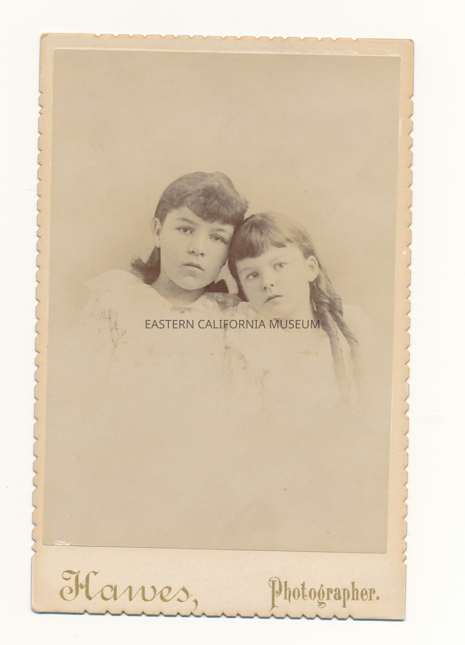 Mounted studio portrait of Elsie Gill and Viva [Vera?] Gill. The photographer was Hawes.Collection
