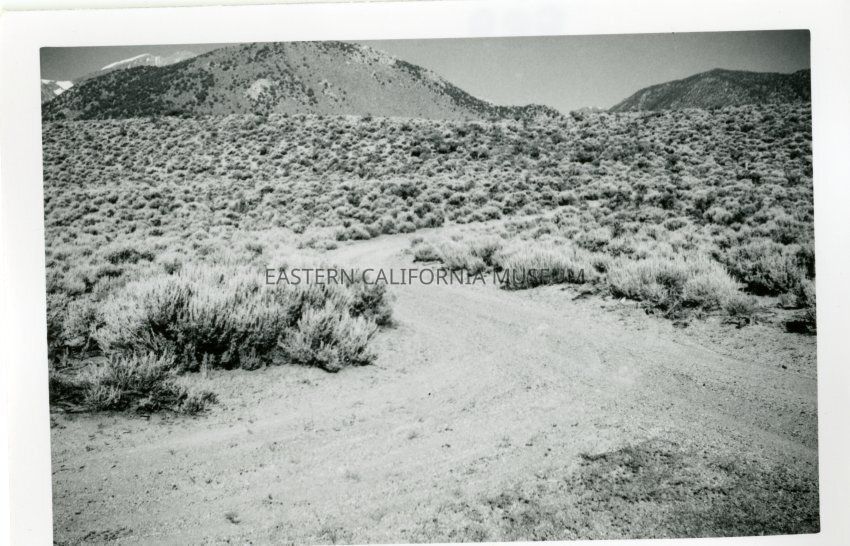 B&W glossy print: dirt road running through sagebrush valley