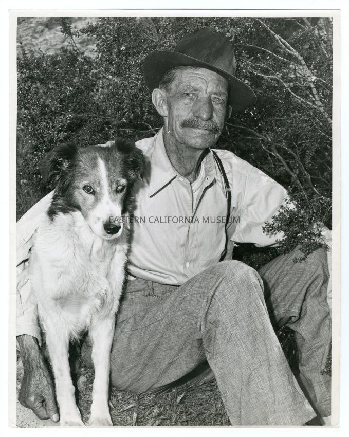 Label on reverse: Adrian Egbert, the "good samaritan" of Cave Spring, who for 25 yerars placed jugs of water at intervals along the long haul up the Avawatz Mountains grade to Grave Summit, on the Barsow-Cave Spring Road.