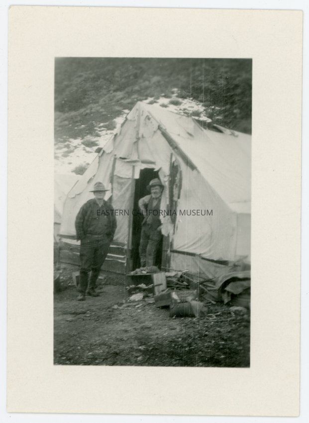 From the back of the photograph: "Mr. Amick & Mr. Clyde at Mazourka Canyon, Dec. 1928"