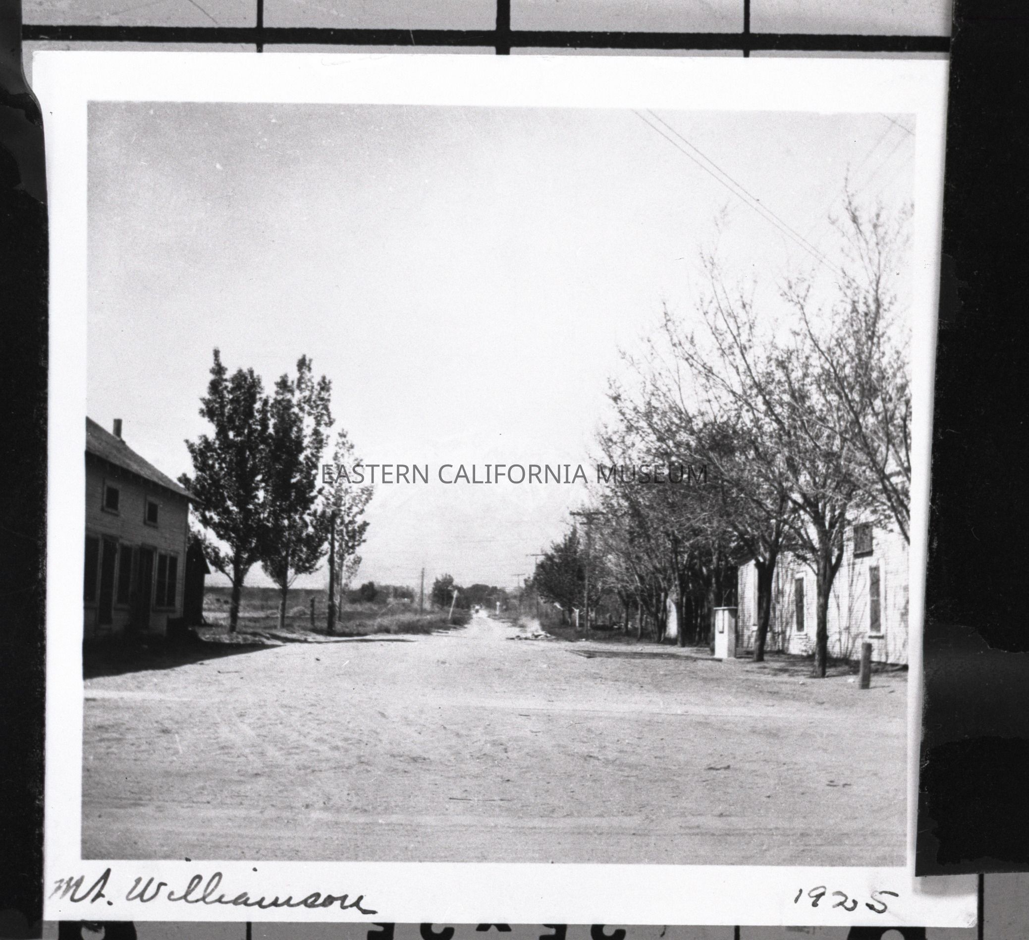 Manzanar town showing piece of community hall/packing house, c. 1925. Negative only, no print.