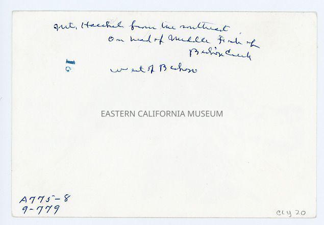 Handwritten in blue ink on reverse: Mt. Haeckel from the northeast. On head of Middle Fork of BIshop Creek west of Bishop.Collection