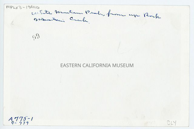 Handwritten in blue ink on reverse: White Mountain Peak from up Rock [Mountain] Creek.Collection