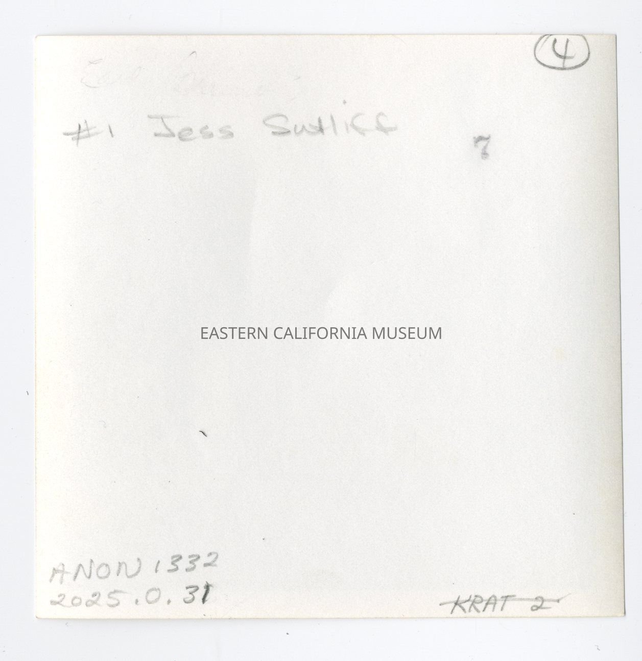 Written in pencil on reverse: #1 Jess Sutliff.Photograph Details