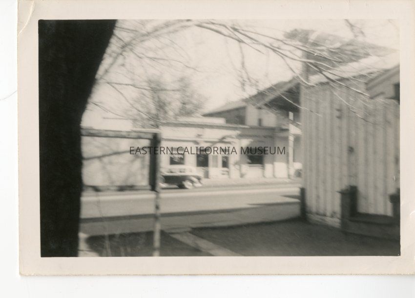 Handwritten in black ink on reverse: Circa 1944. Pool hall across the street (Hwy 6) from our house, Independence, CA.Photograph Details