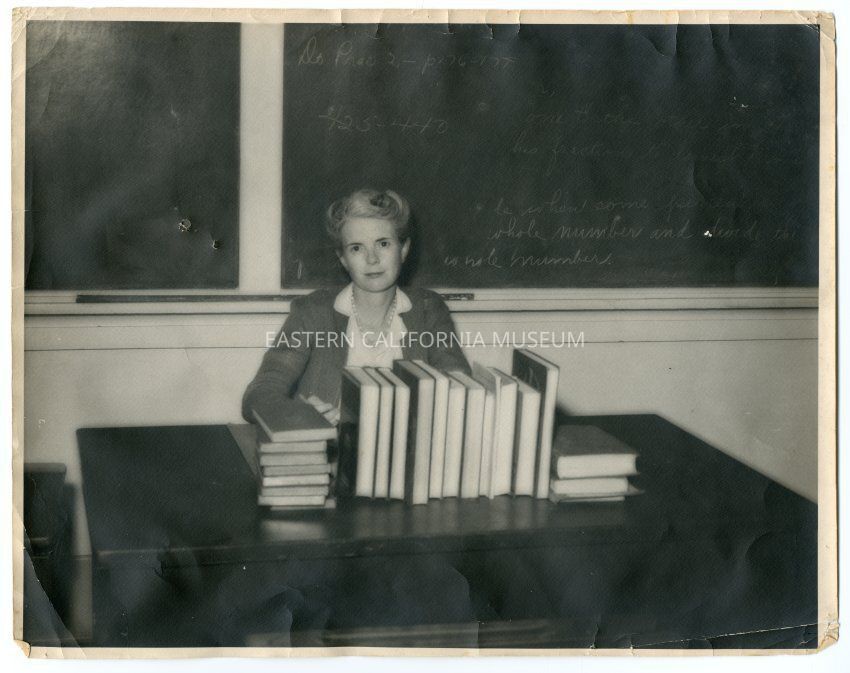 Handwritten in black ink on reverse: Circa 1944. Jean Newbre (mom) in her classroom, Independence, CA.Photograph Details