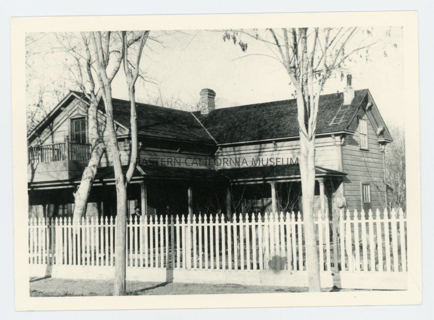 Copy of a photo of the Camp Independence Hospital building (also called the Cartier House) after it was moved to Independence. H. Cartier purchased the Camp Independence Hospital building at auction in November 1883 for $290. It had been constructed at Camp Independence in the fall of 1872 after the earthquake destroyed all the adobe structures.