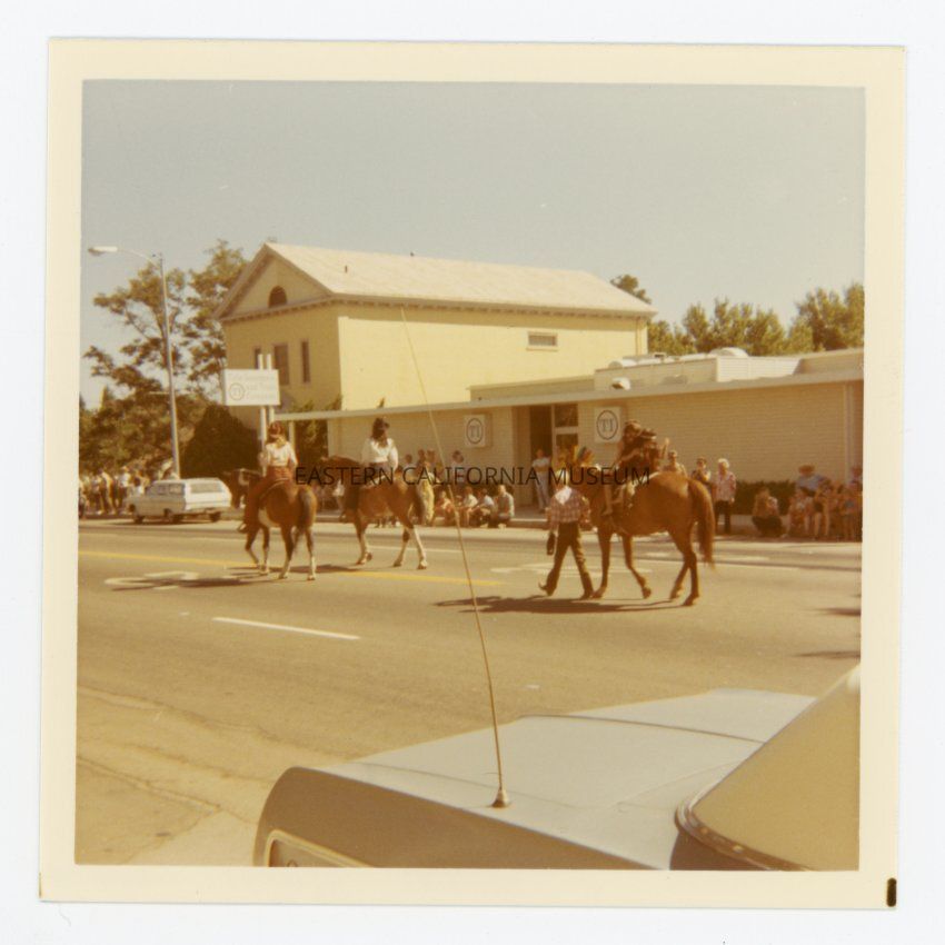 This photo is of a horseback entry into the parade. Three horses, one with multiple kids riding.Collection