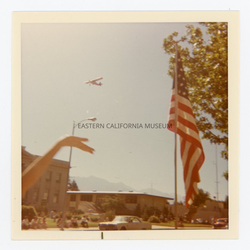 This photo is of a plane flying overhead during the parade or festivities.Collection