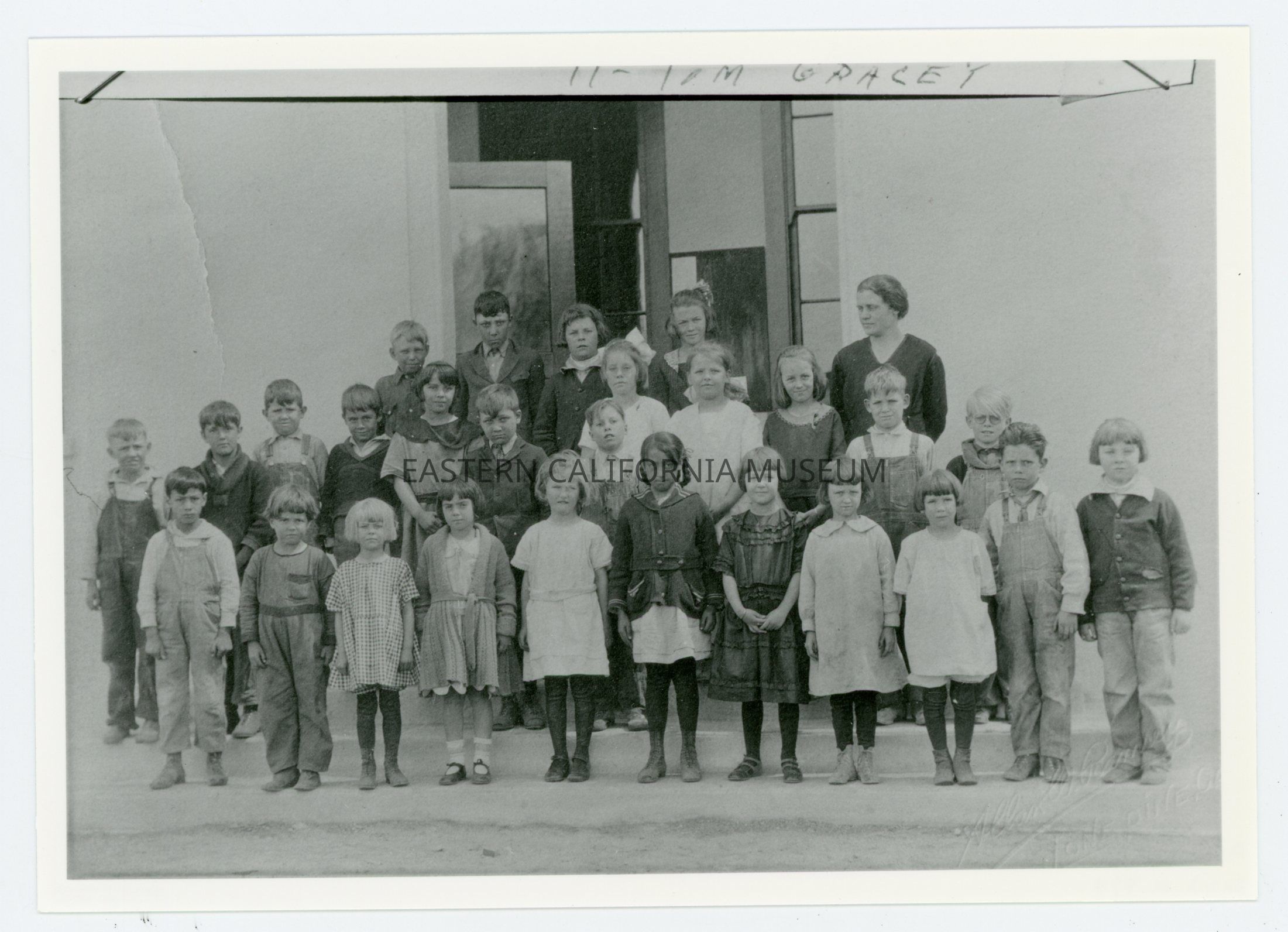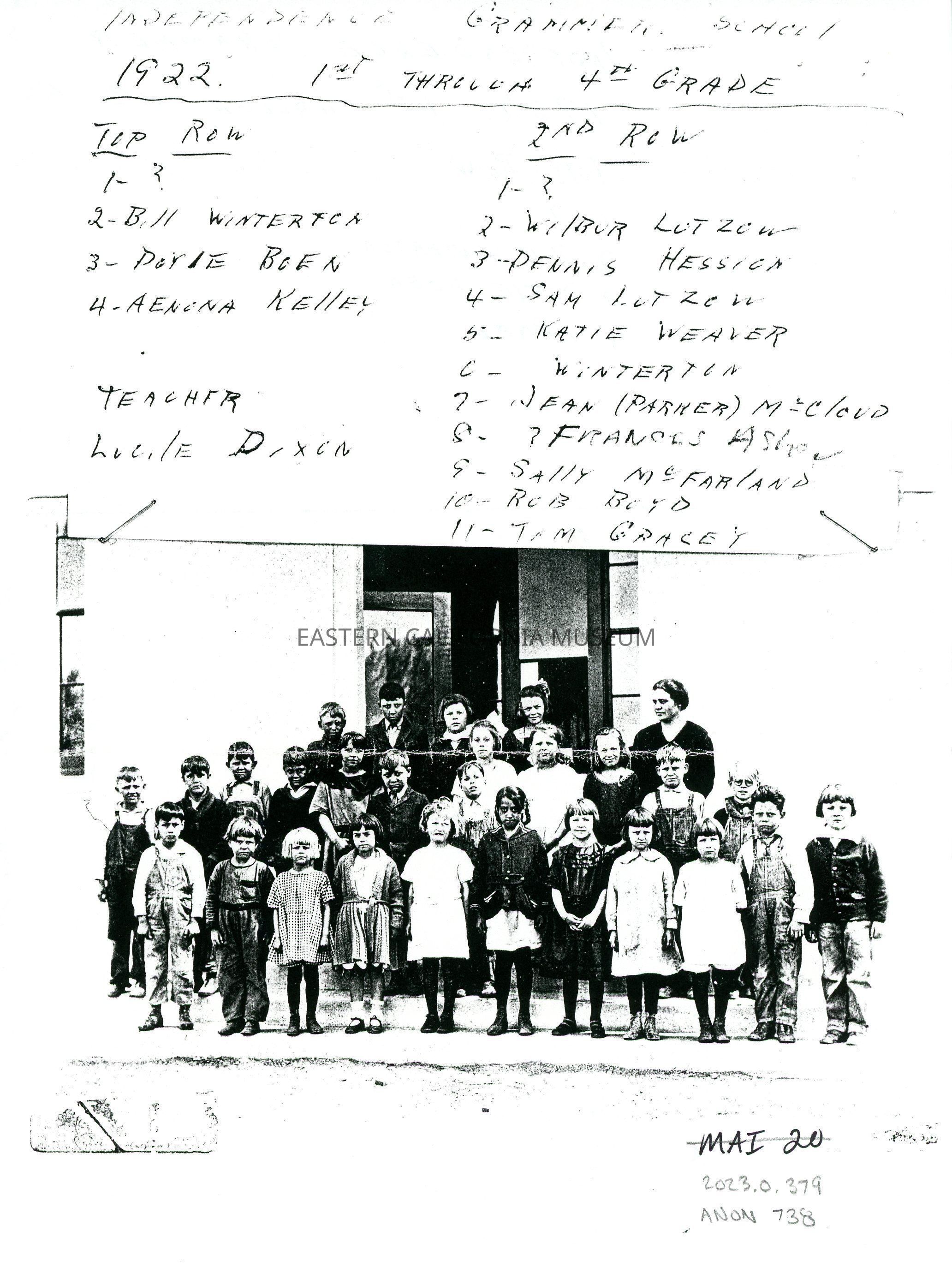 Copy of a photo of a group of school children with their teacher. It has been identified as the Independence Grammar School, 1st through 4th grades, 1922.