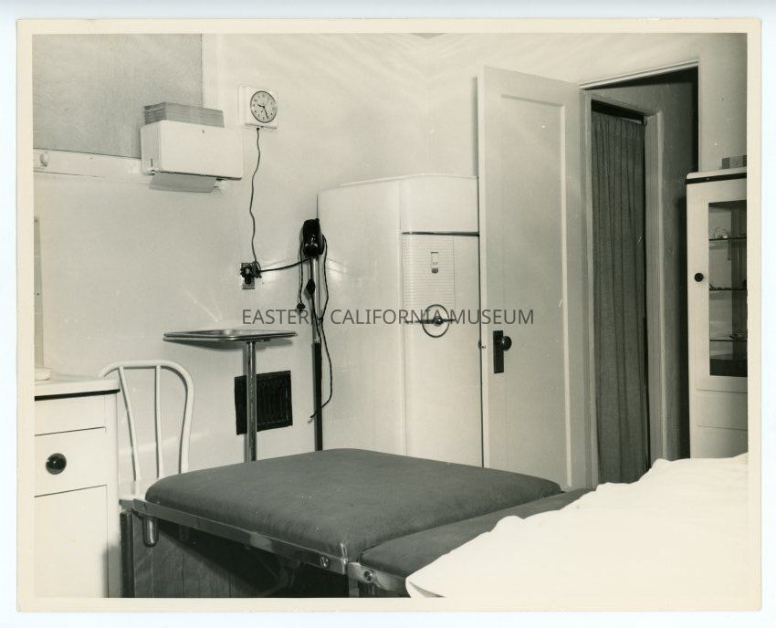 Photo of what appears to be an exam room in either the offices of the Southern Inyo Medical Group, consisting of Dr. George D. Shultz and Dr. William. E Gullett, or the Mt. Whitney Hospital in Lone Pine.Collection